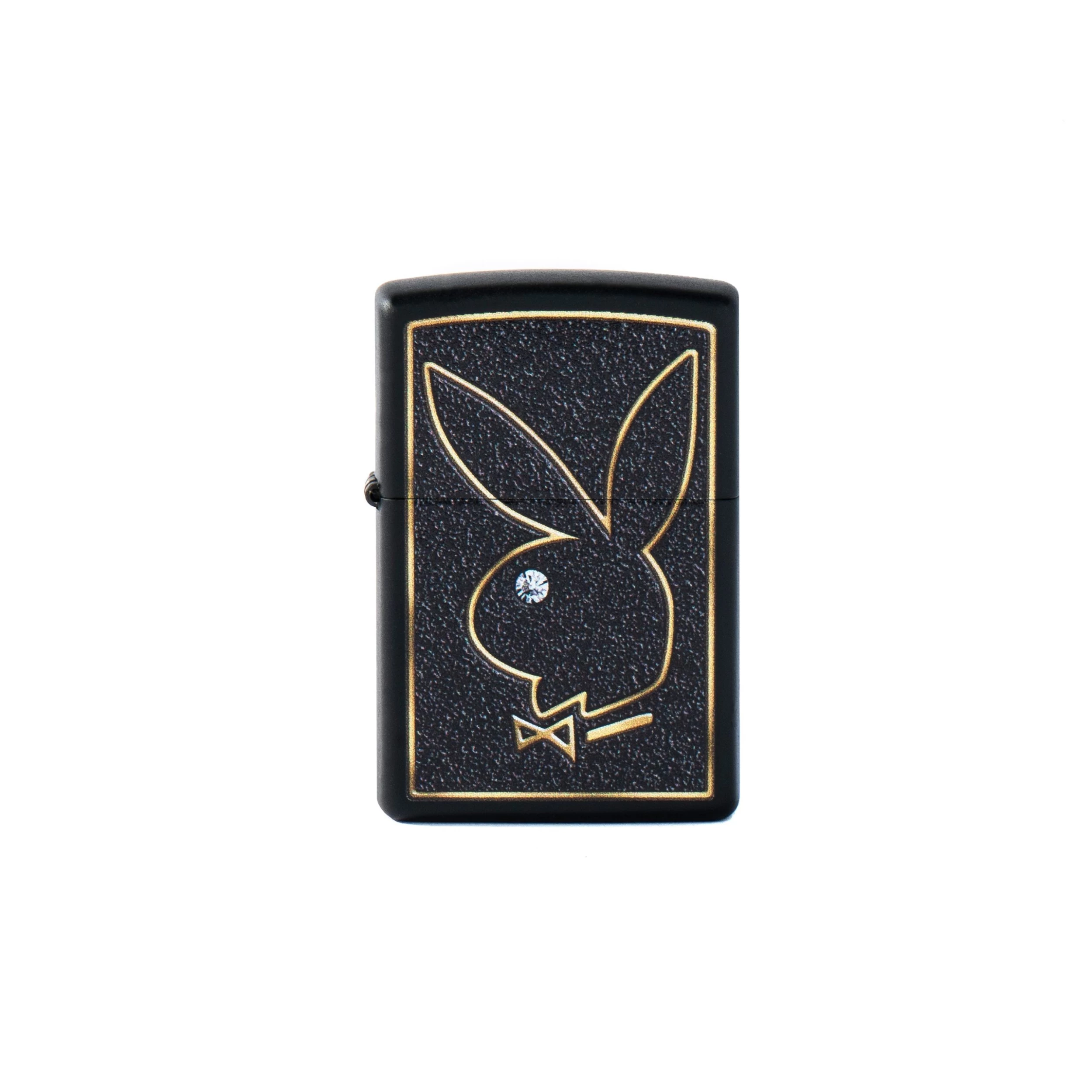 This iconic lighter is both functional and collectible and is a collaboration between Playboy and Zippo. The lighter is reusable, durable, and comes with the distinct βclick.β The matte black design features the classic Playboy Rabbit outlined in gold.