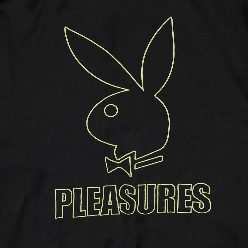 Revamp your wardrobe with the exclusive Playboy x Pleasures Wicked Track Jacket, blending cutting-edge design with ultimate comfort for a look that’s effortlessly cool.