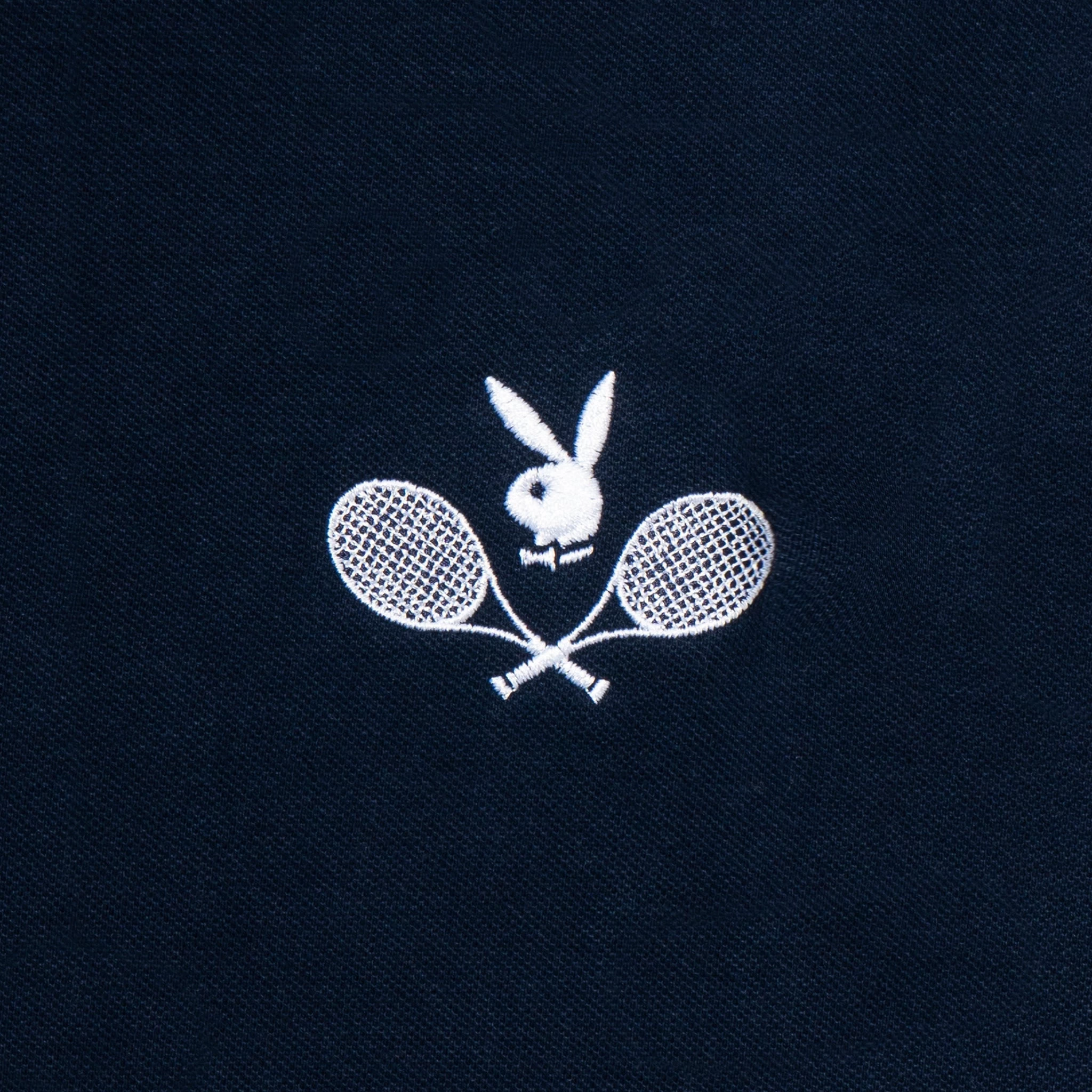 Ace your look on and off the courts. This pristine polo is designed to offer maximum comfort all day long while featuring a retro print of the Playboy Tennis Racquet Club design.