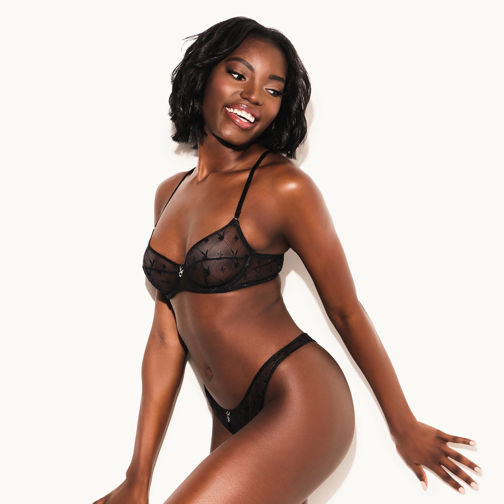 - Signature Playboy Bunny Embroidery: Exquisite bunny embroidery on premium, stretchy mesh for a look that’s unmistakably Playboy.