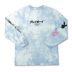 Embrace Iconic Style with the Playboy x Color Bars Blue Tie-Dye Long Sleeve