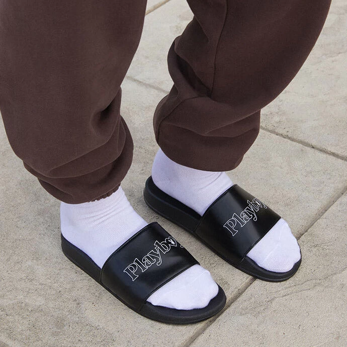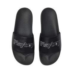 Complete your next outfit with these slide sandals. These classic slide sandals feature a thick strap with the Playboy logo across the front.
